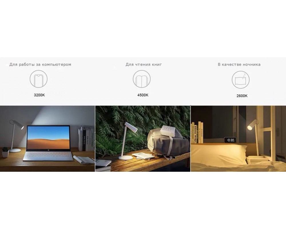 Для наиболее комфортного использования лампа Xiaomi Mijia Multifunctional Rechargeable Desk Lamp поддерживает четыре уровня регулировки цветовой температуры. Это означает, что пользователи могут настроить цвет света на наиболее комфортный уровень для своих глаз.